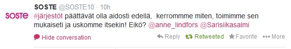 Maailma muuttuu, monen on vaikea pysyä perässä. Strategi ja digitalisti Ville Tolvanen haastaa blogissaan niin yritykset kuin järjestötkin katsomaan tulevaisuuteen. Nappasin haasteen ja heitin sen Twitterissä muille järjestötoimijoille. SOSTE vastasi näin: